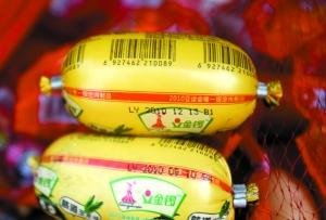 “金锣”火腿肠 昨日,工商等部门查获的大批过期火腿肠中,“金锣”牌占了很大一部分。