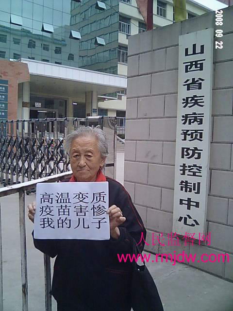 2008年9月18日,我80岁的老母亲,来到山西省疾病预防控制中心,询问“高温暴露”变质疫苗问题,一位姓郑的办公室主任,面对白发仓仓的老人很不客气,他说你不要来这里,我们是卫生厅的下属单位,到卫生厅告去!我老母亲说,是你这里贴标签造成疫苗“高温暴露”变质,就应该找你们解决问题,难道你们都是国务院的下属单位,我就要到国务院告去?