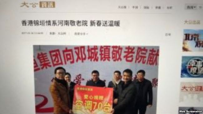 香港大公报曾报道杨瑞在河南贫困县商水县以香港公司名义参与慈善捐赠活动,该活动得到该县主要负责人出面站台。报道说,致力于河南商水邓城水镇开发建设的香港锦垣集团代表到邓城镇敬老院看望慰问老人,并赠送180套羽绒服及70台空调。报道配发的照片显示,商水县委书记马卫东和锦垣集团执行总裁杨瑞一同出席活动。