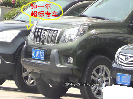 下图:惠州仲恺高新区委书记钟一尔粤LUS122军绿色丰田霸道车