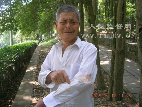 上图:淳安法院法官对68岁老翁鲍庆洪拳打脚踢致多处受伤
