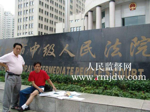 本图:港商谢征(左)向上访专业户农民工讨教,进入戒备森严、层层安检关卡的“人民”法院大门秘诀 朱瑞峰/摄影