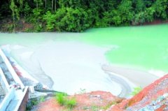 章源钨业新安子钨锡矿区尾砂坝库内尾砂堆积。 新华社发 江西上市公司章源钨业,拦腰截断章江水系的三条河流,开凿山体改变河流走向,利用河道筑坝排放尾砂废水,对当地防汛抗洪、农
