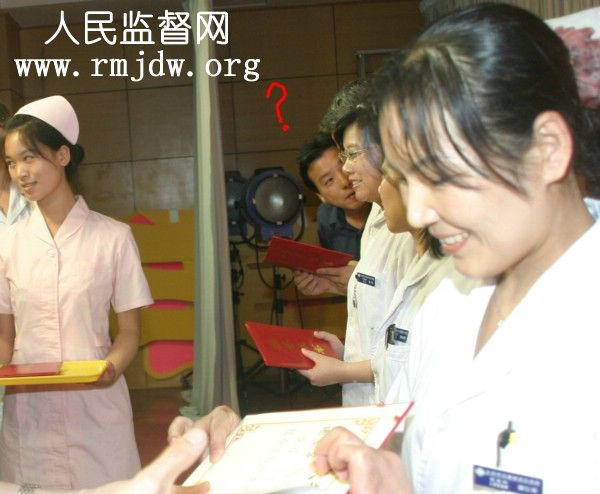 各位领导给先进党员发证书,“吴醉醉”院长拿着证书找不到人。