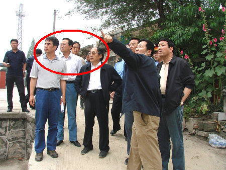 图:龙某陪同铁道部长刘志军视察