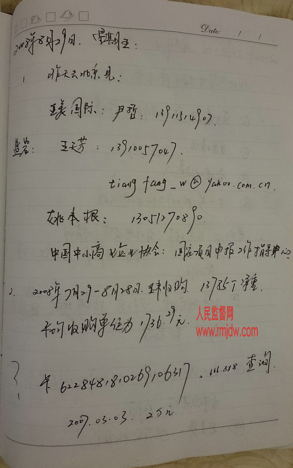 · 人民监督网的朱瑞峰记者网络曝光张雷达行贿日记后,引起了最高检领导的高度关注,山东省检察院领导象热锅上的蚂蚁,多次试图公关。在曝光后的第6天,即,11月5日下午,上级领导命令德州市检察院到德州福洋淀粉公
