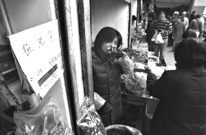 昨日,幸福大街一商店打出“盐无货”告示。本报记者 李冬摄