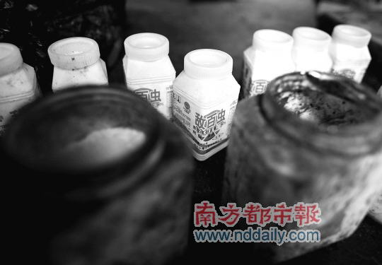 作坊内摆放着敌百虫和着色剂。