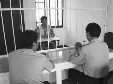 因醉酒驾驶被刑拘的朱某(中)在接受审讯。图片来源:楚天金报