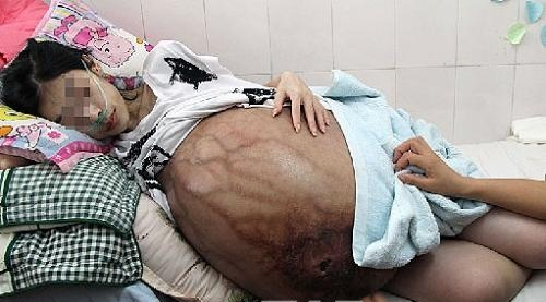 郑金凤说,2009年17岁的苏田田开始检查出患有罕见病症子宫间质肉瘤,四处求医一直治不好,到了今年,苏田田的肚子越来越大,行动也越来越不方便。今年6月,一些热心的人士将她的照片发到了网络上,希望获得热心人的帮助,并能找到医治的办法。