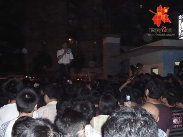 车主很牛比的拿过话筒:"同学们静一静,我也是湖大毕业的..."我一听这话,当时气不打一处来,隔着那2个校警,用拳头打那车主,校警拦我,我就从下面用脚踢那畜生,我身后的几个同学也一起打,那傻比一点脾气没有.后来校警极力阻拦,我们不得不住手了.