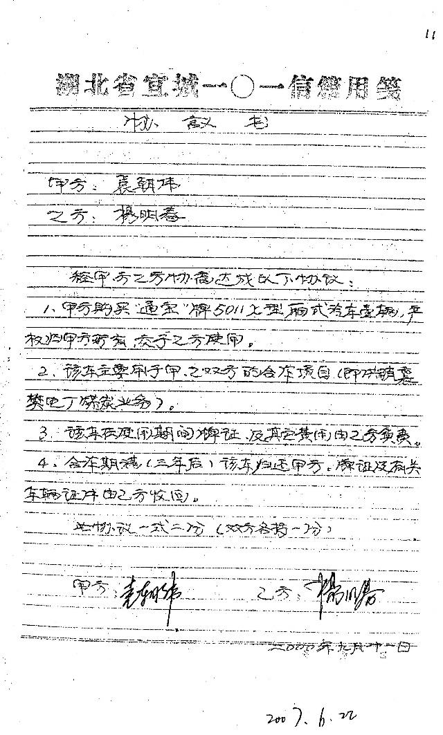 2、周家森的询问笔录(卷228页)——证明了杨明春将协议拿给公司副经理周家森过目,同时证明了襄樊分公司与袁朝伟有这样的合作项目,以及该车的来源和权属。证实了为履行合同到电厂多次去联系业务的事实。同时证明了襄樊分公司撤消杨明春调回监狱后,又回到襄樊使用该车催收外欠款的事实。
