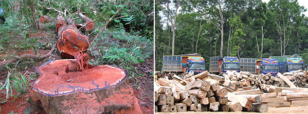柬埔寨的酸枝贸易:从Preah Vihear的新伐木材到Stung Treng的木材仓库