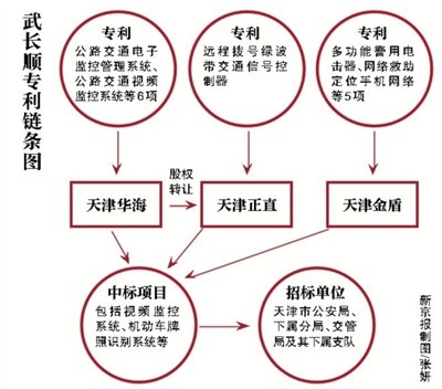 武长顺担任交通管理局长11年,担任天津市公安局局长11年;发明的34项专利与智能交通等领域相关;而掌握其专利的公司多有公安背景,经营范围也与其管理领域多有重合。