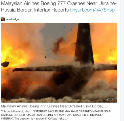 【快讯:马来西亚一架客机在乌克兰与俄罗斯边境地区坠毁】俄罗斯国际文传电讯社17日报道,一架马来西亚客机在乌克兰与俄罗斯边境地区坠毁,机上载有295人。这架飞机执行的是从阿姆斯特丹飞往吉隆坡的任务。