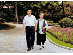 在习近平总书记的书架上,摆着这样一张照片。 习近平非常孝敬母亲。有时间陪母亲一起吃饭后,习近平都会拉着她的手散步,陪她聊天。