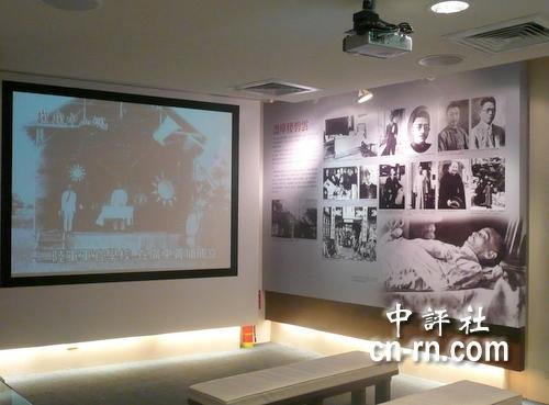 孙中山的特展会场播放历史影片。