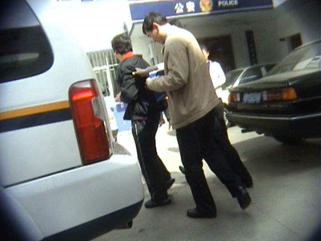 罪犯李新华被三门峡公安局侦查员押上警车,送往看守所