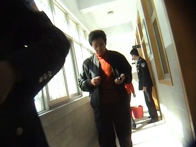罪犯李新华试图冲破民警的警戒线殴打采访的记者。
